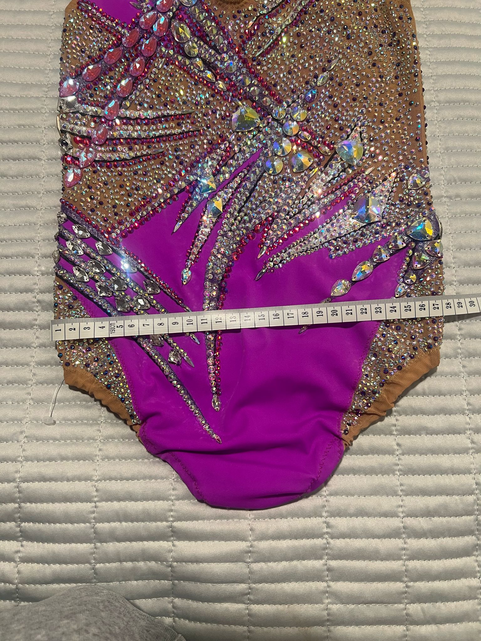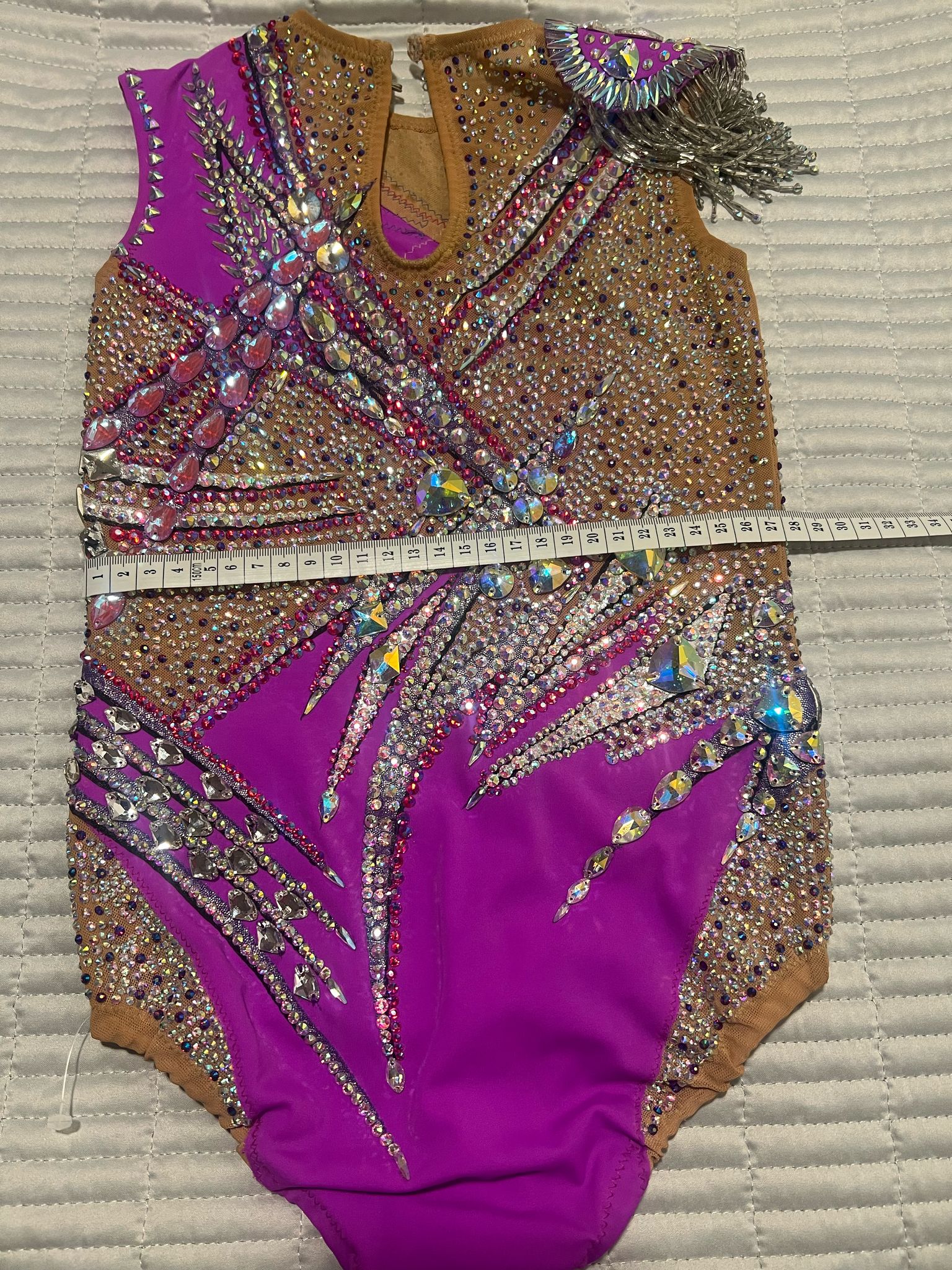 Beautiful handmade leotard, with high quality stones, brand new. Height 130cm. Please see the photo with the measurements below. Watch the video of this leotard in life here