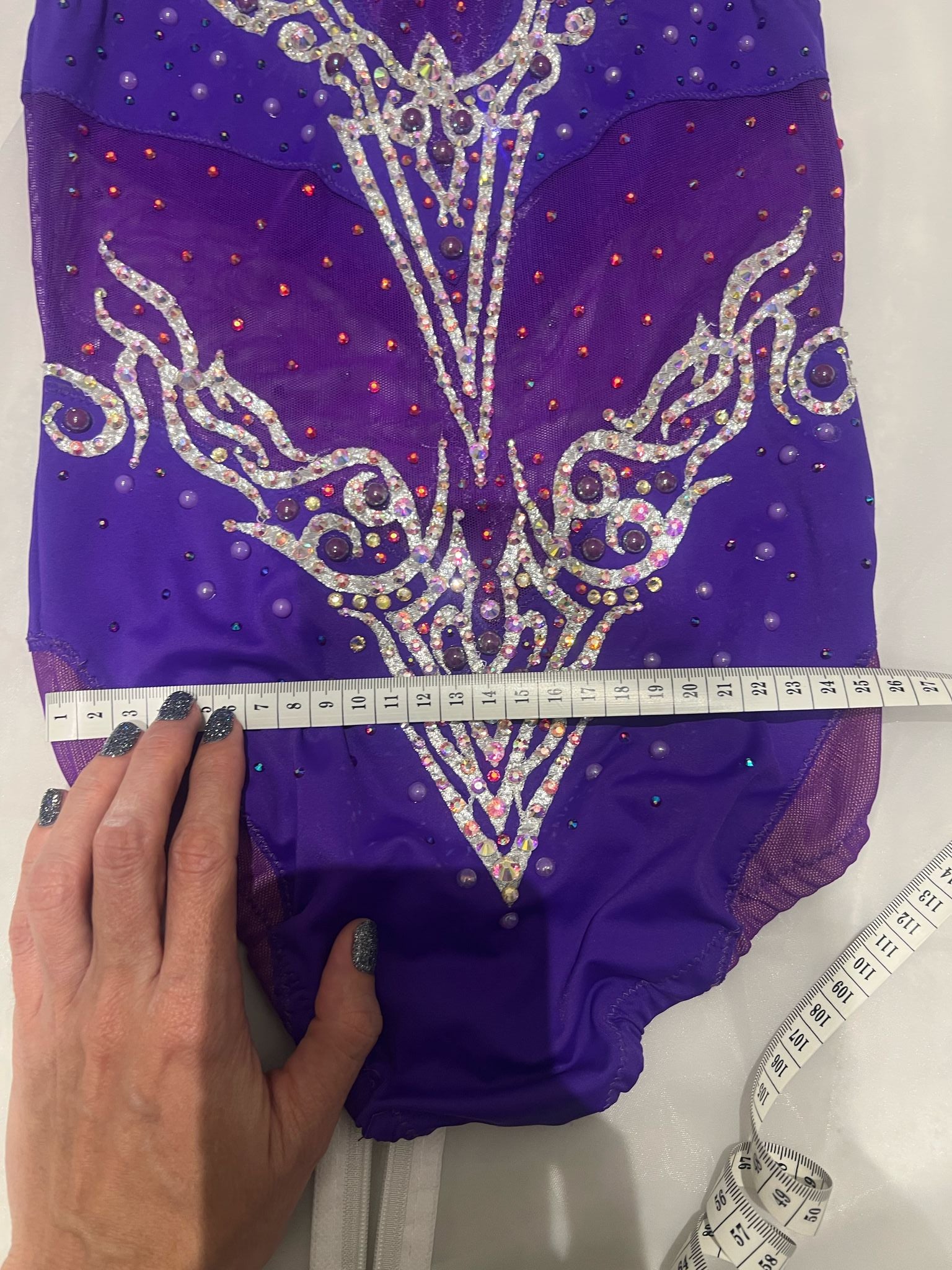 Beautiful handmade leotard adorned with high quality stones, brand new. Please see the photo with the measurements below.