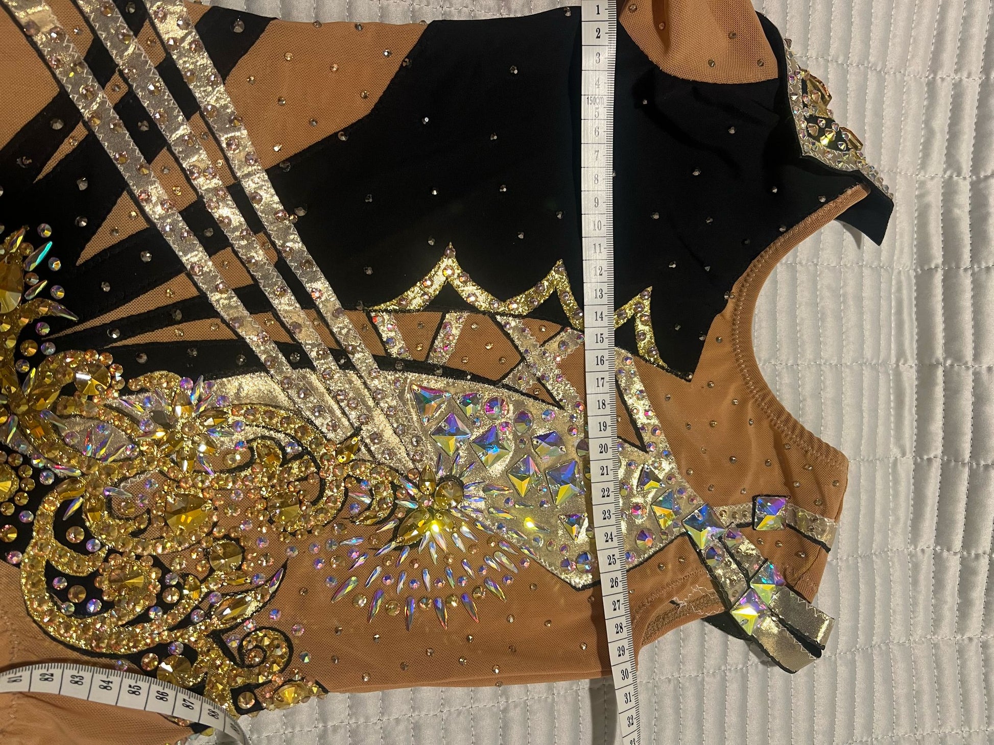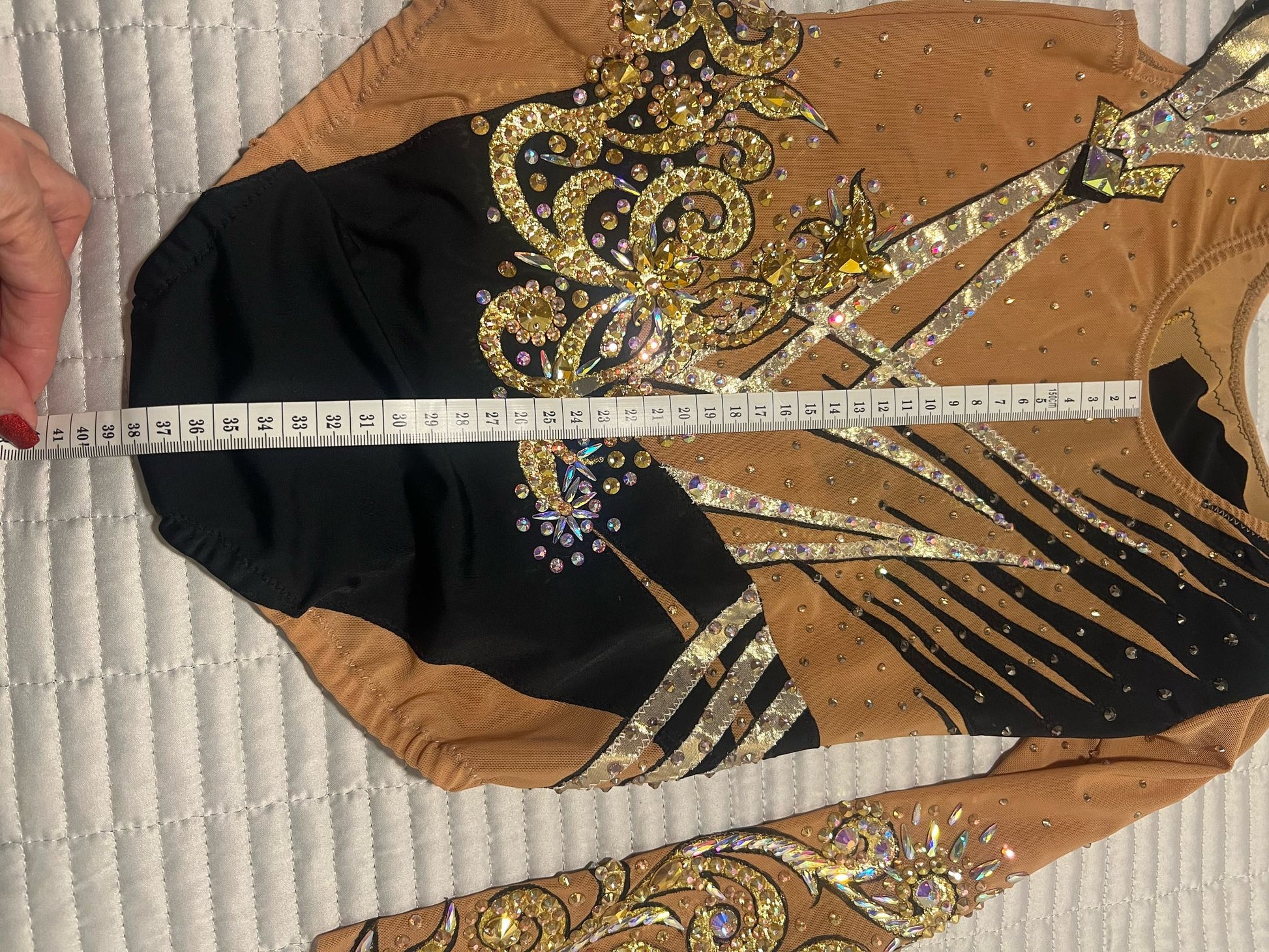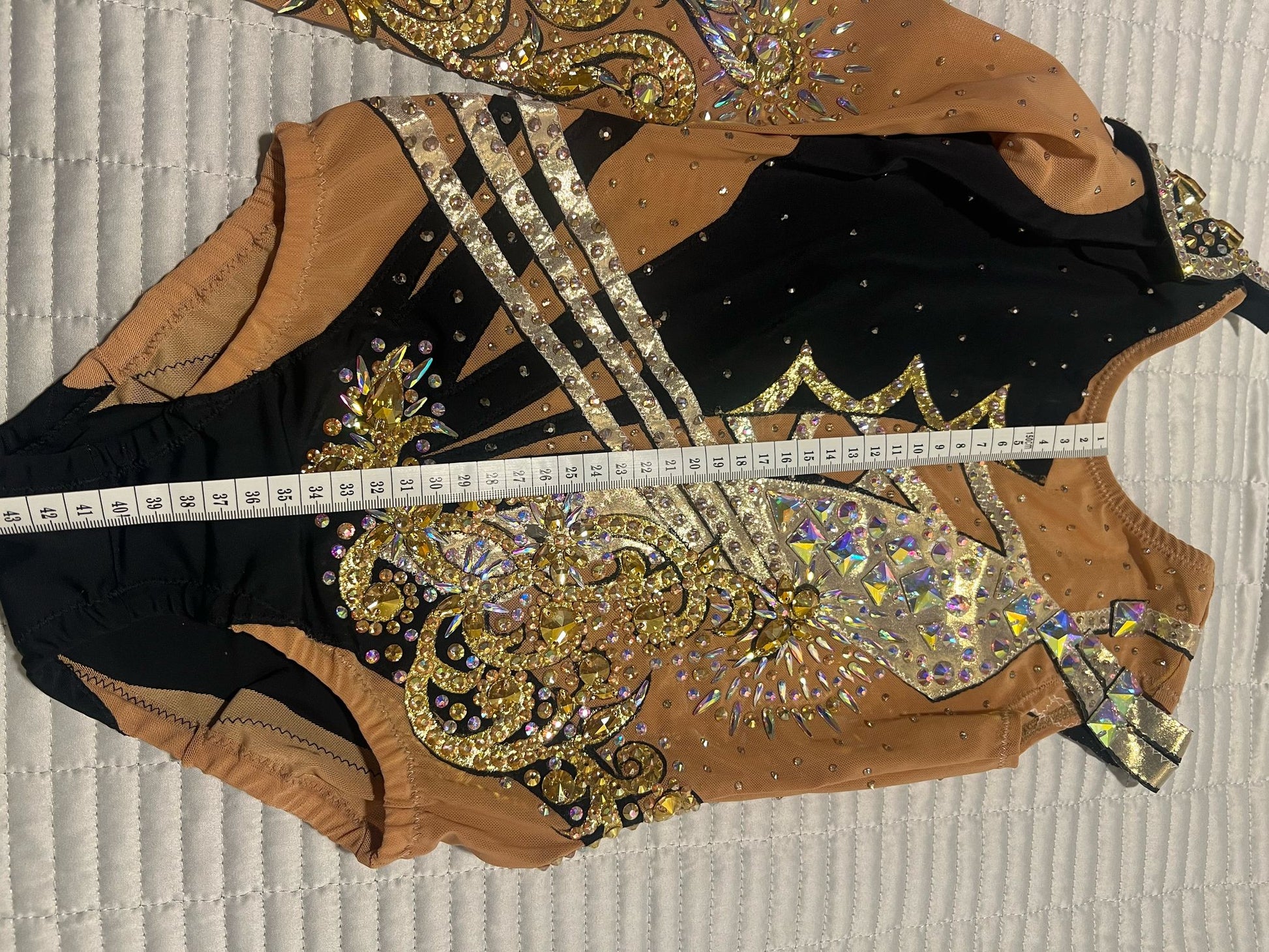 Beautiful handmade leotard for a little gymnast, with high quality stones, brand new. Height 110-130cm. Please see the photo with the measurements below.